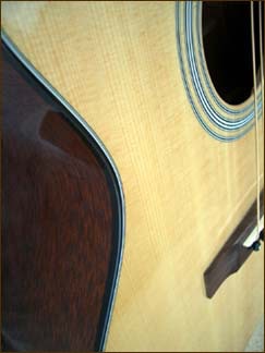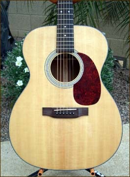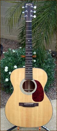 The 000 guitars have a short scale (24.5") and are well balanced for use in a wide variety of styles. My 000-18V shown below is a 2000 model with Sitka spruce top and mahogany back/sides. The aged toner top and tortoise shell pickguard give it a vintage look to go along with the classic Martin square solid headstock and logo. In my personal opinion the 000 and OM sized guitars are the perfect balance of size/volume and comfort/tone. You could play one of these guitars all day long. The neck is low fast action and the overall sound of this instrument will turn many heads.