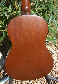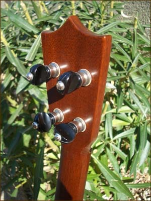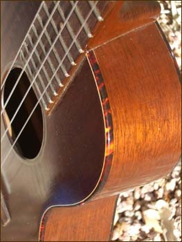 Tenor ukuleles were made by Martin from 1928 to 1977. The vast majority were produced in the Style 1 configuration (called 1-T) for the tenor. A few Style 3, 4 and 5 were made in the 30's and also some koa body tenors in the same period, but these are extremely rare. Shown below is my Style 1-T ukulele manufactured in the mid 1960's. The number of tenor ukes produced by Martin was very small compared to the sopranos. My 1-T features a body of solid mahogany as well as mahogany neck. Body binding is a beautiful tortoise shell material and rosewood fingerboard and bridge. Fitted with original Grover friction tuners, the neck is a very thin and fast shape.